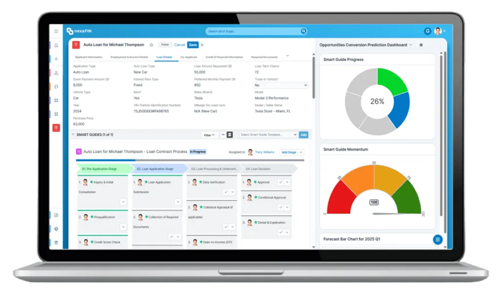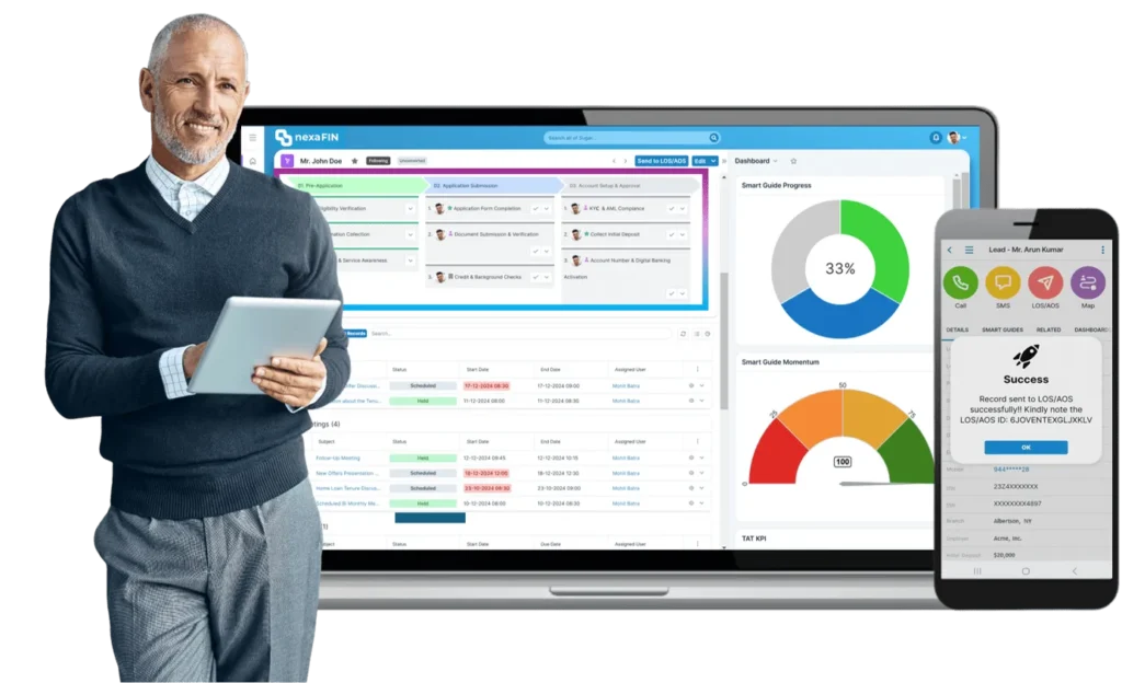 Contemporary banking is based on an integrated network of financial infrastructures and digital platforms. nexaFIN, developed on SugarCRM, integrates in a seamless fashion with core banking platforms, loan management systems, underwriting engines, KYC/AML compliance solutions, credit card management, BI & analytics software, and others. By integrating with account opening systems, document management, claims processing, and mobile banking solutions, nexaFIN provides an integrated customer view, workflows, and automated compliance monitoring. This broad integration ability enables banks to maximize operational efficiency, enhance risk management, and provide enhanced customer experiences at the same time while being fully regulatory compliant.