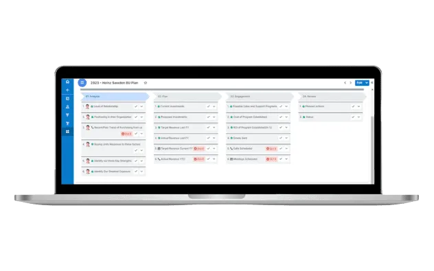 Draw a comprehensive customer journey map for a given account. Make it easy for Sales/AMs to onboard and act on closing fast. Enable marketing teams to develop and map assets for strategic accounts. Get a quick view of the completion of the BU plan based on defined KPIs.