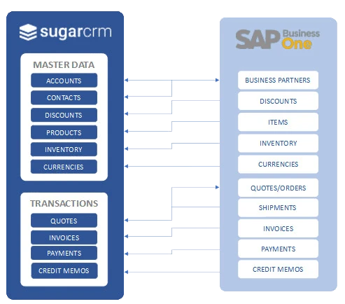 Running your SugarCRM and SAP B1 instances in silos can lead to slow quote and order processes, low visibility for sales into the shipment status of orders or checking the credit worthiness of customers. Integrating SAP B1 (BusinessOne) with SugarCRM gives end-to-end visibility into how your business is running and improves operational efficiency. Ambit’s SugarCRM-SAP B1 connector helps you build opportunity to order and order to cash processes.